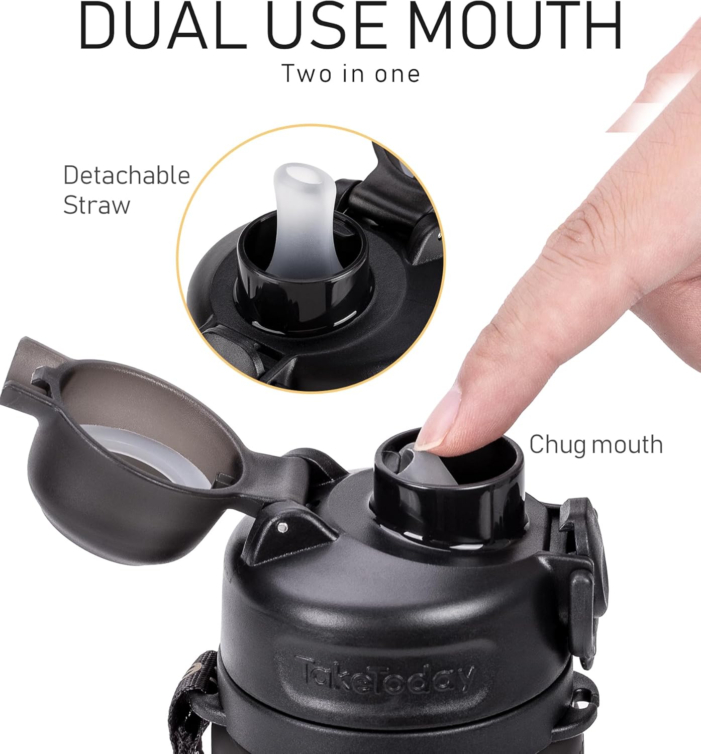 Say goodbye to leaks and spills with the leak-proof design of this water bottle. The secure straw strap ensures that your bottle is always within reach, while the convenient flip-top lid makes it easy to take a sip on the go.